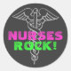 Nurses Rock! stickers with caduceus and neon colours. Personalizable colours and text.