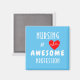 This typography nurse magnet has a message which most nurses find to be true. Wear it proudly! It has a light blue background and a red heart with an EKG complex on it.