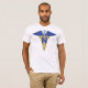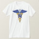 This Nursing Caduceus features golden snakes twined around a light blue staff with deeper blue upraised wings and large letter N.
