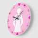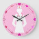 Nursing Icon with Stethoscope Wall Clock. Pink hearts for the hours and a cotton candy pink background. A great gift idea. Excellent office art for the Nursing station, Hallway, Clinic, Doctor's office, paediatrics or for the home. Available as a square face and also a smaller round clock. The background colour is customisable to suite your decor.