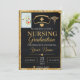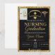 This modern black and gold nursing graduation invitation features a clean and elegant layout with nurse cap design. Ideal for a classy graduation party. Customize instantly in Canva with your event details.