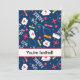 Celebrate a nurse's graduation from nursing school with the custom invitations to a party, luncheon, graduation or other event. The invitation is fully customisable for your information on the back for the event, place, hosts, location and more. It's easy to customise or delete fields. A white bar goes across the front with the customisable words You're Invited. This "Love a Nurse" art includes words Love a Nurse, a stethoscope, colourful bandaids, a red cross, retro nursing caps, hearts and white dots on a navy blue background. The back with the words for the event includes the same design as a border, with the words on a white background surrounded by a narrow red border. Retro nurse caps are at the bottom with a heart. The whimsy art Love a Nurse is original art by Phyllis Dobbs. The colours are turquoise blue, white, red, black, bright fuchsia pink, lime green. Fully customisable to personalise. Other colour backgrounds are available as well as coordinating products.