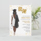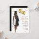 Nursing School Graduation Party Invitation. Nurse Invitation for your daughter, niece, mother, aunt, cousin, or friend who is graduating from nursing school and is now officially a nurse. Female Nursing School Graduation Invitation for grad parties celebrating women who just graduated from nursing school. Celebrate the new Registered Nurse with this elegant nursing graduation invitation! Featuring illustrated portrait of a dark skin woman with short hair. The nurse grad is wearing a stylish white dress, a black graduation robe draped over her shoulder, and a matching black graduation cap. She holds gold foil style balloons with the letters RN in one hand and a stethoscope in the other hand. Accented with shimmering gold confetti, it perfectly captures the joy and excitement of her big achievement.