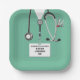 Creative nursing school graduation party plates for nurse practitioner, registered nurse or physician assistant. To personalise edit text to add name.