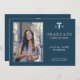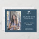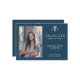 Modern elegant navy blue and white nursing school graduation announcement card template with your custom photo and text.