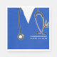 Unique nursing school graduation party napkins featuring blue hospital scrubs, stethoscope and Swiss Army knife. To personalise edit text to add name of your favourite nurse.