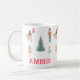cute modern and simple nutcracker and ballerina patten christmas mug with custom name in pink. This cute nutcracker christmas ballerina mug is perfect for a Ballet lover Christmas gift idea or just because you love your ballerina.