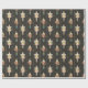 The Nutcracker Ballet Christmas wrapping paper features a nutcracker toy pattern with a classic black background, gold Stars and gold Stripes for a classic elegant look.