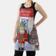 Light blue and red nutcracker Christmas apron is perfect for a German Bavarian theme. Cute Bavaria Christmas village with store fronts and snow is styled after Rothenburg, Germany. Nutcracker with bright red jacket and green hat is the finishing touch for a festive snow village scene. Easily your friend's or family member's name to the top of the kitchen apron. This is a perfect personalised gift for someone who loves to cook and bake.