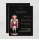 For a Christmas party with family and friends. Black background, and a nutcracker soldier as decor. Personalise and add the details. Golden text.