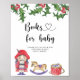 Celebrate with this Nutcracker themed baby shower party! Watercolor Nutcracker, wooden horse toy, drums. Decorated with holly branches. On the reverse side of the card are holiday christmas pattern (magical snowflakes). Matching items available.