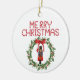 Nutcracker Bow Wreath Red Merry Christmas Holiday Ceramic Ornament