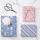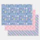 This Nutcracker Christmas wrapping paper features 3 separate, whimsical patterns in a pink, yellow and blue colour theme. Sheet 1: a nutcracker and dancing ballerina pattern; Sheet 2: candy-canes and snowflakes; Sheet 3: candycane striped pattern in pink, yellow and blue. A unique and adorable giftwrap for the holidays!