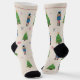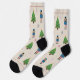 Christmas socks with an illustration of a Nutcracker pattern, Christmas Trees and some stars on a light brown background. Perfect for a gift or to wear at Xmas!