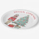 Magical Christmas Party paper plate with a watercolor illustration of Nutcracker, Christmas tree and presents