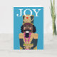 Nutcracker on turquoise background with Joy in white text. Black African American dark Nutcracker