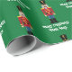 Nutcracker illustration Christmas wrapping paper. Cute Holiday gift wrap roll design for friends and family. Customisable green background colour. Available in matte and glossy finish. Funny toy soldier pattern design. Personalise with your own custom Holiday greeting and name.