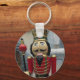 This colourful button keychain, zip pull, features a traditional Nutcracker Guard, with a golden crown, standing on guard outside a castle. This would make a lovely stocking filler, or Christmas gift.