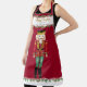 "Nutcracker Merry Christmas We love you Kids Names & Message Apron." A regal Nutcracker in his finest dress with a gold crown on his head, stands at attention. "Merry Christmas" in gold glitter typography text along with your children or grandchildren's names and message of love. All art was painted in watercolors by internationally licensed artist and designer, Audrey Jeanne Roberts, copyright.