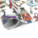 Elegant Nutcracker Mouse King Ballerina Christmas Wrapping Paper featuring hand-drawn festive illustrations of the Mouse King, ballerinas, snowflakes, and candy canes, all against a classic white background with tiny gold stars. Perfect for holiday gift wrapping, Christmas parties, and ballet lovers. Add a touch of whimsy and tradition to your presents this season!