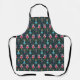 Cute and fun Christmas apron featuring hand drawn illustration of cat, dog, and mouse as nutcracker ballet characters. The background is green.