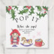 "Pop it. When she pops!". Celebrate with this Nutcracker themed baby shower party! Watercolor Nutcracker, wooden horse toy, drums. Decorated with holly branches. On the reverse side of the card are holiday christmas pattern (magical snowflakes).