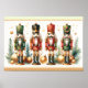 March into the holiday season with 'The Nutcracker Quartet' poster, where four dapper defenders stand in a row, ready to bring festive cheer and a touch of majesty to your holiday decor. Clad in vibrant uniforms of red and green, each Nutcracker is a symbol of Christmas traditions and joyful celebrations. Adorned with sparkling ornaments and pine, they're not just wooden sentinels; they're the guardians of glee and merriment. Perfect for those who appreciate the classics, this poster is sure to command attention and stand guard over your holiday spirit!