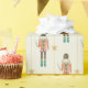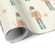 The Nutcracker Christmas wrapping paper features a nutcracker toy pattern with a classic cream background, gold Stars and gold Stripes for a classic elegant look.