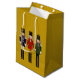 Christmas Nutcracker Trio -Three Nutcrackers standing side by side on top of a solid gold background. The first nutcracker is dressed in blue and white with gold embellishments. The centre nutcracker is dressed in red and gold with gold embellishments. The third nutcracker is dressed in green and white with silver embellishments. Each one of these nutcrackers are available separately on assorted Zazzle gifts and products. Choose any size gift bag available. Two text areas are in place for you to personalise with. Edit the text to say anything you like. Delete or clear the text areas that you do not want.