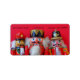 Three colourful nutcrackers on a red background, matching stamp available