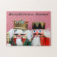 Two colourful nutcrackers on a cheery red and white polka dot background - customise with your message or leave blank