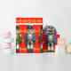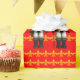 Lines of colourful nutcrackers march across rows of gold fleur de lis on this holiday gift paper. Shown here with a red background, you can choose any colour you like using the "Customise It" button.