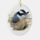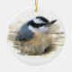 This holiday ornament featues an adorable Red-breasted Nuthatch who looks like he is taking charge! He is a very small bird with a rust coloured breast, blue-grey back and a black eye stripe. His head and beak are very large in proportion to his body. Hang this little guy on your Christmas tree. Everyone will love him!