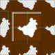 Brazil map outline in white with contrasting colours in Emporio Moffa's Festive Brazil palette inspired by the national flag, carnival and coffee industry.