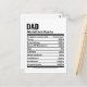 Nutrition Facts Funny Dad Personalised Name Postcard