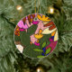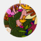 This review is for a ceramic circular-shaped ornament with the customer's design on both sides. The customer may have one design on one side, and a different design on the other side. The ornament is made of white porcelain. It has a gold cord with which the ornament is attached to a Christmas tree or other object.