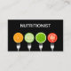 Nutrition and Dietician themed business cards with a unique graphic display of various slice of food on a fork in a minimalist two side calling card design.