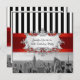 Customisable Invitations and accessories with an iconic view of the New York City skyline from the top of 30 Rockefeller Centre, featuring a black & white photo of the Emp St Building, lower Manhattan including the World Trade Centre. It also features a black and white stripe pattern, and your choice of 3 different coloured ribbons - red, turquoise and black. It also features a white gradient label in a silver look frame.