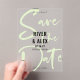 Acrylic typography save the date card with a modern script in nyanza green printed across the whole card and your names in bold black letters centred on the modern acrylic save the date card without a photo.