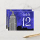 Customisable Invitations and accessories with a silhouette of the New York City skyline featuring the Chrysler Building and an etched ESB in the foreground. They also feature a blue starry night background with white stars.