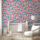 This wallpaper will liven up any space with its large scale and bright colours. Have a Nice Day NYC coffee cup in pink and blue was inspired by the We are Happy to Serve You New York City Classic Greek Coffee cups all over NYC.