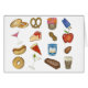 Greeting card features an original illustration of a range of classic New York City foods including bagels, pretzels, cupcakes, pizza, cheesecake and more.