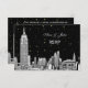 NYC Skyline Etched Look 01 Invitation Suite Black & White, Black Background Shown: Choose Your Background Colour - RSVP Card =========