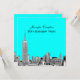 Elegant, stylish, chic customisable invitations and accessories with an iconic view of the New York City skyline, featuring an etched look photo of the ESB and Chrysler Building and rear view of the Flatiron Building shown on an aqua background.