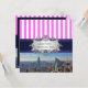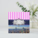 Customisable Invitations and accessories with an iconic view of the New York City skyline from the top of 30 Rockefeller Centre, featuring a photo of the Empire State Building, into lower Manhattan including the World Trade Centre. They also feature a pink and white pattern, a navy blue ribbon and a white gradient label in a gold look frame. (Note: Some coordinating accessories don't have the photo noted above.)
