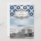 Customisable Invitations and accessories with a black and white photo of an East River view of New York City's iconic Brooklyn Bridge and Municipal Building with a boat passing by. It also features a Star of David motif on light blue background, a light blue ribbon and a white gradient label with your choice of a silver or gold colour frame.