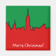 The New York City Skyline with a silhouette of the Empire State Building, Bank of America Tower and more in festive Christmas colors of red and green