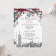 Customisable Invitations and accessories with a black and white etched look view of the iconic New York City skyline featuring the Emp St Building and a floral border featuring winter colours.===========