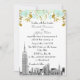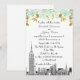 NYC Skyline Etch Look Black White with Mint Gold Floral Border - Wedding Invitation ==========