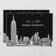 Elegant, stylish, chic customisable invitations and accessories with an iconic view of the New York City skyline, featuring an etched look photo of the ESB and Chrysler Building and rear view of the Flatiron Building shown on a black starry background.